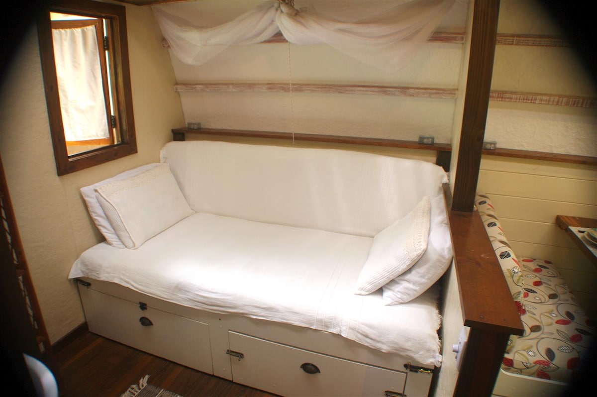 Mata de São JoãoCharming quite equipped caravan, in the most quiet district of Imbassaí. We are in front of a still protected forest where you can meet tens of native botanical species, in a property of 1000 m² in which are also 3 chalets and a family house. The caravan is 15 minutes on foot from the beach, the shops and the restaurants. Here, the friendship is a queen and we treat our hosts we would like to be treated. Be all welcome!