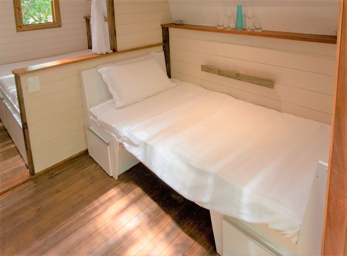 Mata de São JoãoCharming quite equipped caravan, in the most quiet district of Imbassaí. We are in front of a still protected forest where you can meet tens of native botanical species, in a property of 1000 m² in which are also 3 chalets and a family house. The caravan is 15 minutes on foot from the beach, the shops and the restaurants. Here, the friendship is a queen and we treat our hosts we would like to be treated. Be all welcome!